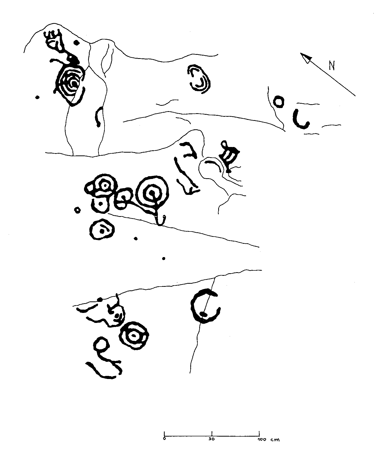 Próximo o grupo I da Valgada da fonte do Sapo, tratase de tres grupos localizados nun outeiro de escasa elevación, a esquerda do cortalumes que descende cara o barrio das Nabas en Priegue. No grupo I temos ata 14 combinacións circulares, algunhas delas asociadas por riscos. Tamén oservanse coviñas e sucos. No grupo II coviñas e cazoletas e formacións circulares. No grupo III dúas cazoletas e unha combinación circular.