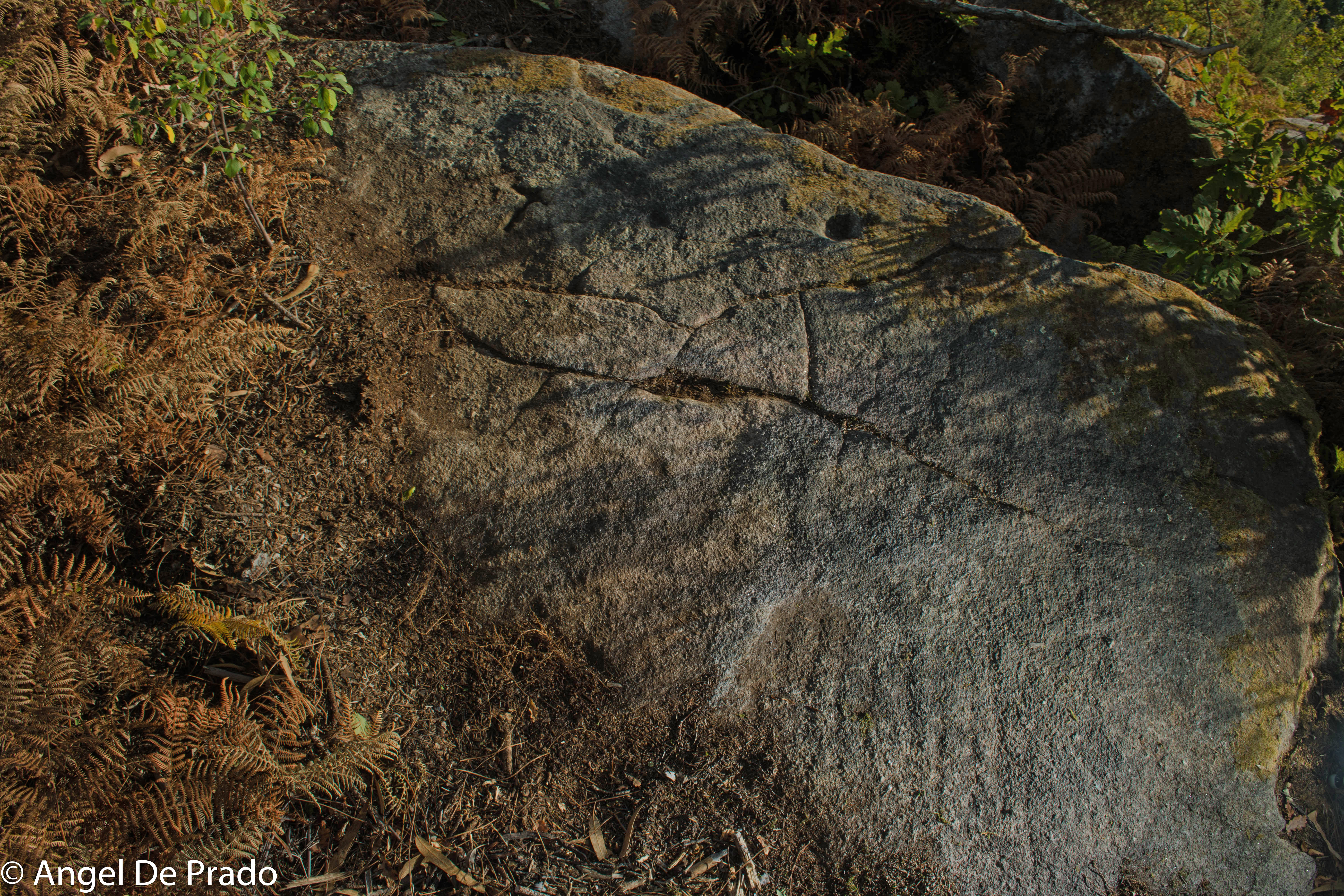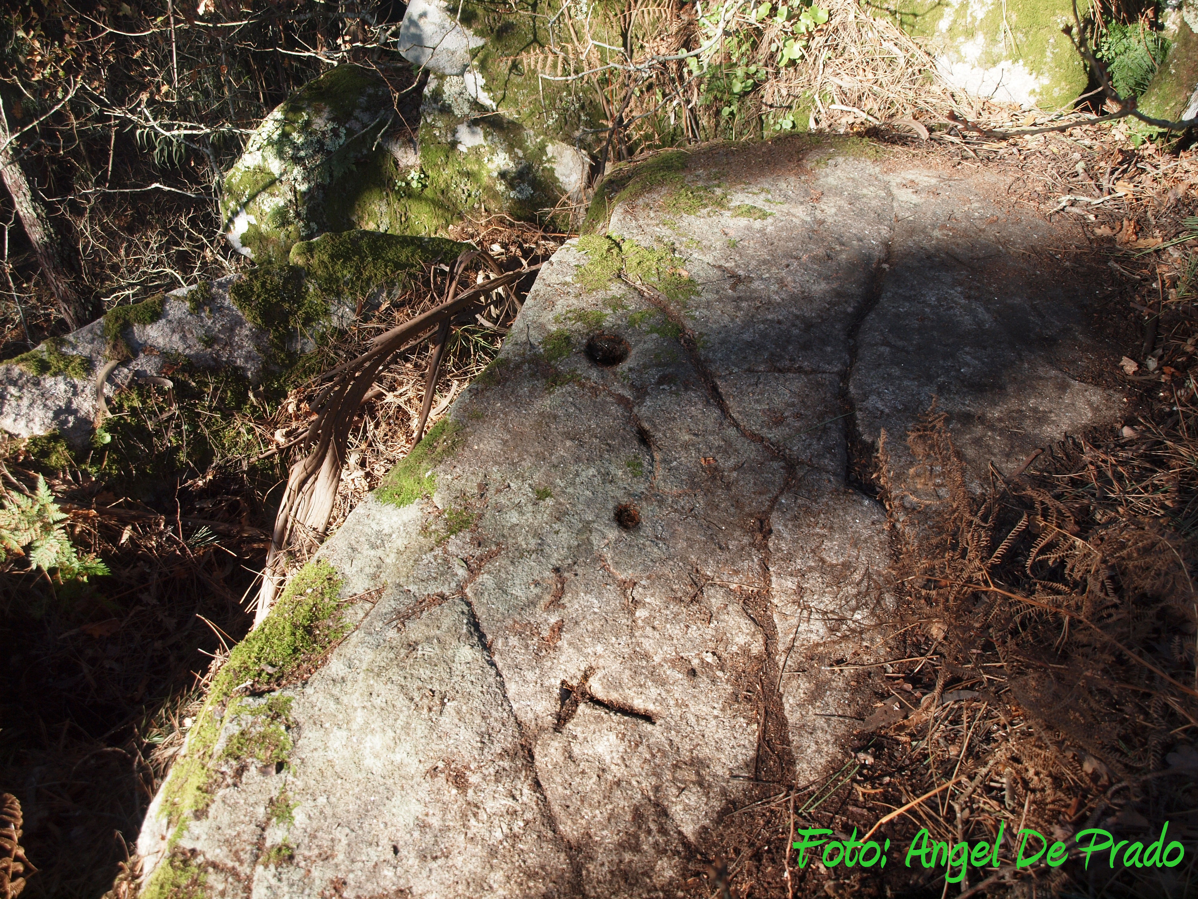 No alto coñecido coma Balteiros, podemos atopar este conxunto, no que aparecen representados un cruciforme- de clara feitura con ferramenta metálica- e algunhas coviñas de diferentes diámetros. Noutra rocha próxima, temos outro cruciforme (tamén de feitura con útil metálico). Segundo algúns autores aparecerían na laxe principal -ademais dos motivos xa mencionados- un taboleiro e noutra rocha, algúns círculos concéntricos incompletos con eixo radial, e coviñas e cazoletas nun terceiro soporte.