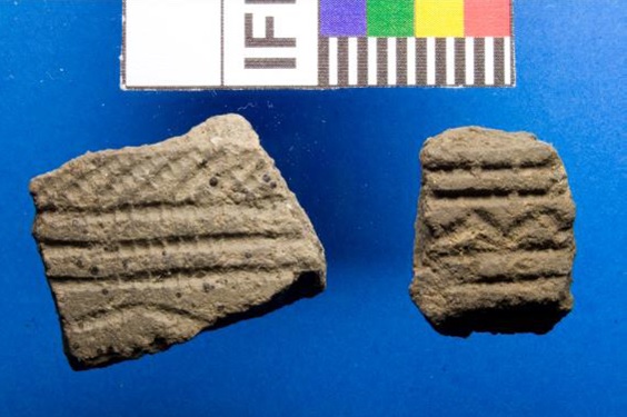 Fragmentos de cerámica campaniforme de Cal de Outeiro. Fonte Clube Espelolóxico Maúxo.